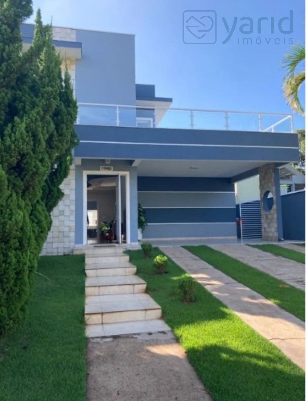 Ensolarada, moderna e cheia de vida! Casa muito bem ventilada, com iluminação natural em todos os ambientes, armários em todos os cômodos, 3 dormitórios, uma suíte, escritório no mezanino, cozinha espaçosa, despensa, lavanderia, quintal gramado, hortinha e árvore frutífera, ar-condicionado, quatro vagas de garagem, sendo duas cobertas, pronta para morar. Terreno de 360metros quadrados. Perto do centro. Condomínio com portaria 24h, piscinas, quadras, lago, sauna, academia, salão de festas, tranquilidade e natureza ao redor.