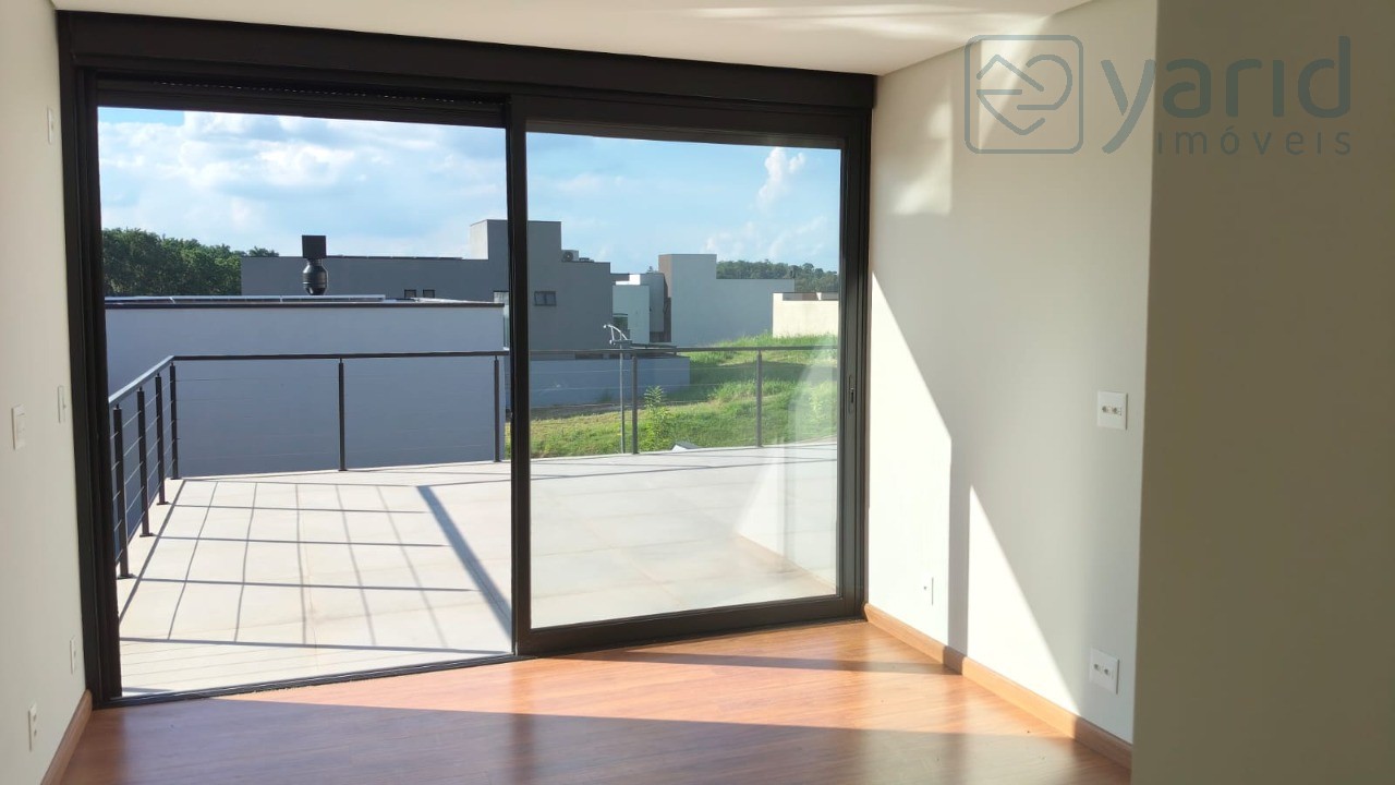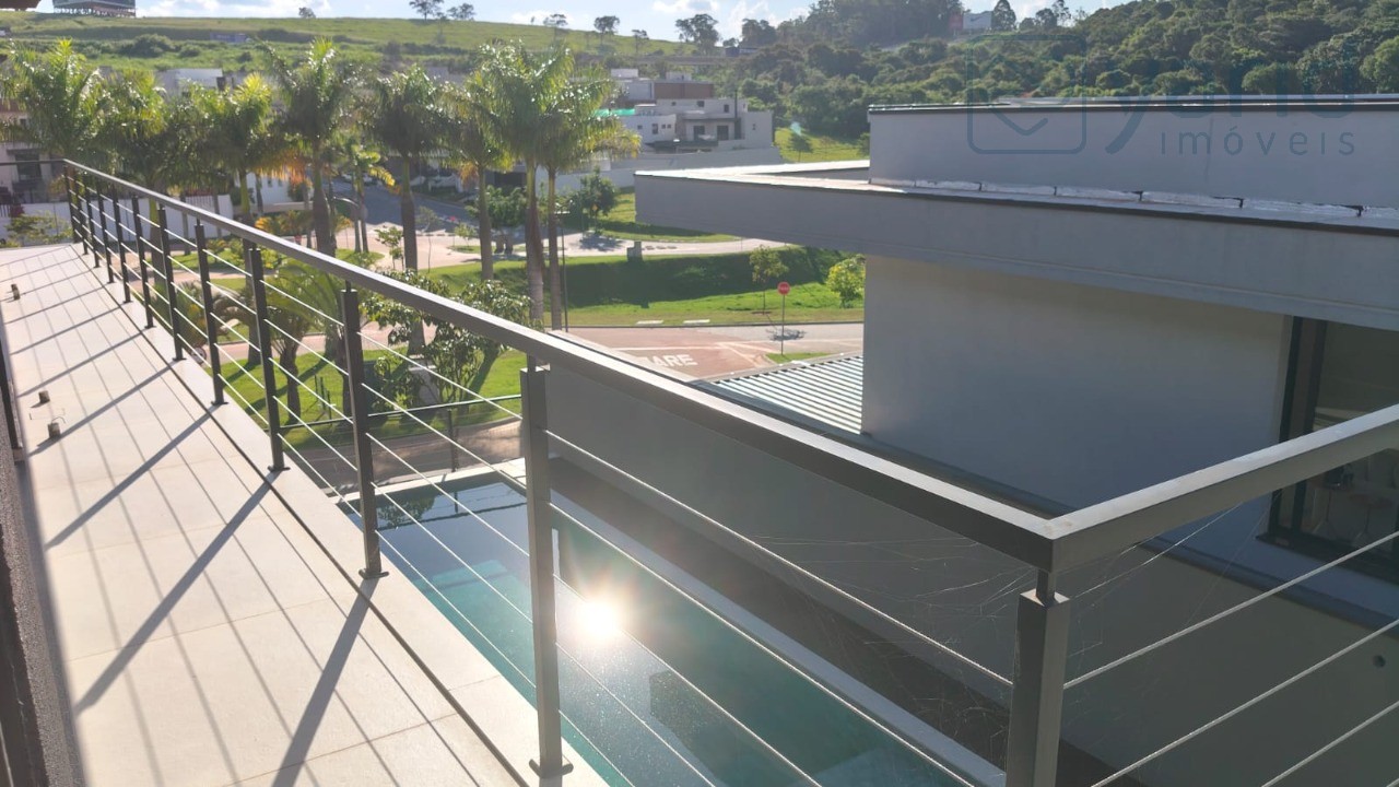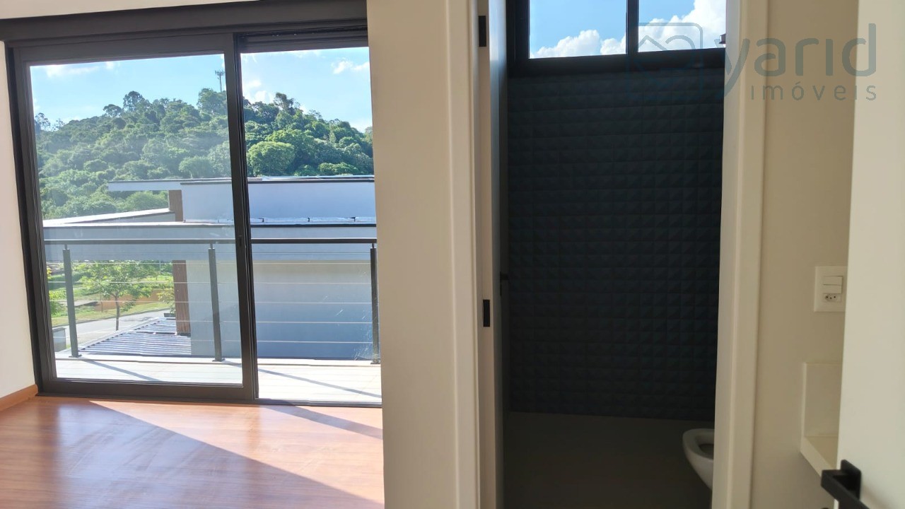 O imóvel possui 435 m², e 428,46 m² de área útil, distribuídos da seguinte forma: Pavimento superior: - 04 suítes com sacada, sendo 01 máster com closet e terraço; - escritório; Pavimento inferior: - Sala 02 ambientes; - Lavabo; - Escritório e/ou dormitório; - Cozinha com ilha; - Despensa; - Área de serviço; - Espaço gourmet com banheiro; - Piscina; Pavimento nível da rua: - Depósito; - 04 vagas. Condomínio com Portarias Social e de Serviço blindadas, segurança 24h. Área de lazer: - 107 mil m² de área verde; - 16 mil m² de clube completo; - Lounge gourmet; - 03 churrasqueiras; - Espaço jovem; - Saunas seca e a vapor; - Spa/Repouso; - Bar na piscina; - Playground; - Brinquedoteca; - Salão de jogos; - Salão de festas; - Quadras de tênis, recreativas; - Quadras de areia e gramadas; - Mirante com vista para o lago; - Horta comunitária; - Vista para a serra do Japi. Localização privilegiada, entre os bairros Malota e Novo Mundo, próximo à supermercados, escola, academias, farmácias e comércio do bairro. Fácil acesso às Rodovias.